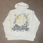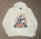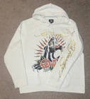 Ed Hardy Panther Roses Hoodie EHM1300-73 Men’s Sz.XL Brand New with tags 100% Authentic Elevate your style with this Ed Hardy Panther Rose Hoodie in Ivory. This regular fit pullover features a crew neck and drawstring closure. The long sleeves and hood make it perfect for walking, skateboarding, or gym & training during the winter, summer, fall, or spring. The hoodie is made of a polyester, cotton, and cotton blend material with a fleece fabric type that feels soft and comfortable. It is machine washable and has pockets for added convenience. The embroidered logo and graphic print give it a unique touch. Get ready to embrace your inner warrior, predator, spirit, snike, and spike with this Ed Hardy hoodie.