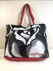 Ed Hardy Tote Bag with Rose Print Measurements: 13" X 17" X 4" (approx.) In very good pre-loved condition. There is some wear on the bottom edges. Actual item Photos. Don't hesitate to contact us before purchasing if you have questions about the item's condition and shipping cost. If you receive an item with a noticeable flaw not shown in the photos, please contact us before leaving feedback. We strive to describe all items thoroughly and accurately. Please ask any questions you have before offering or buying. We will do our best to return your messages within 24 hours. Happy Shopping!