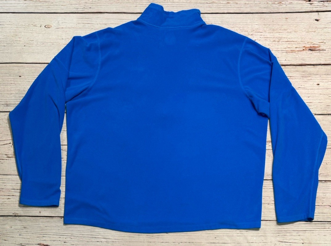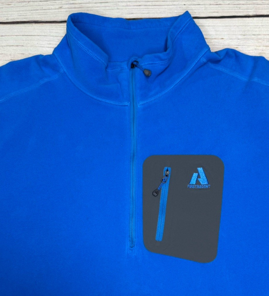 The Eddie Bauer 1/2 Zip Jacket in Whittaker First Ascent Blue is a versatile and stylish activewear piece designed for men in size XXL. Made with polyester outer shell and fleece fabric, this windbreaker style jacket features a stand-up collar and a zip closure for easy on and off. It is lightweight and suitable for various seasons, making it perfect for outdoor activities like hiking, running, and cross training. The solid blue color and Eddie Bauer branding add a touch of outdoor sports-inspired style to your wardrobe, while the machine washable care instructions ensure easy maintenance. Check pictures for condition and measurements for size.