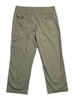This Eddie Bauer pant is a stylish addition to any wardrobe. The beige color and solid pattern make it a versatile piece that can be dressed up or down. The flat front and straight leg style provide a comfortable fit, while the side pocket accents add a touch of convenience. Made from machine washable cotton, this pant is easy to care for and perfect for casual occasions. The zip closure ensures a secure fit, and the 30 inch inseam is ideal for men of various heights. Whether you're going to work or running errands, this pant is a great choice. Has a few marks see pictures for more details and measurements for size.