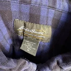 The Eddie Bauer Casual Button Down Mens XL Blue Plaid Rugged Flannel shirt is a versatile and rugged piece perfect for casual occasions. Made of durable cotton flannel, this shirt features a classic collared neckline with button-down closure and long sleeves. It is machine washable for easy care, making it ideal for travel, parties, work, or everyday wear. With a chest size of 54 inches and a regular fit, this shirt is both comfortable and stylish, offering a timeless appeal with a hint of hipster, western, and outdoor themes. Ideal for all seasons, this shirt with pockets adds a practical touch to its overall design. 26 inch chest 31 inch length