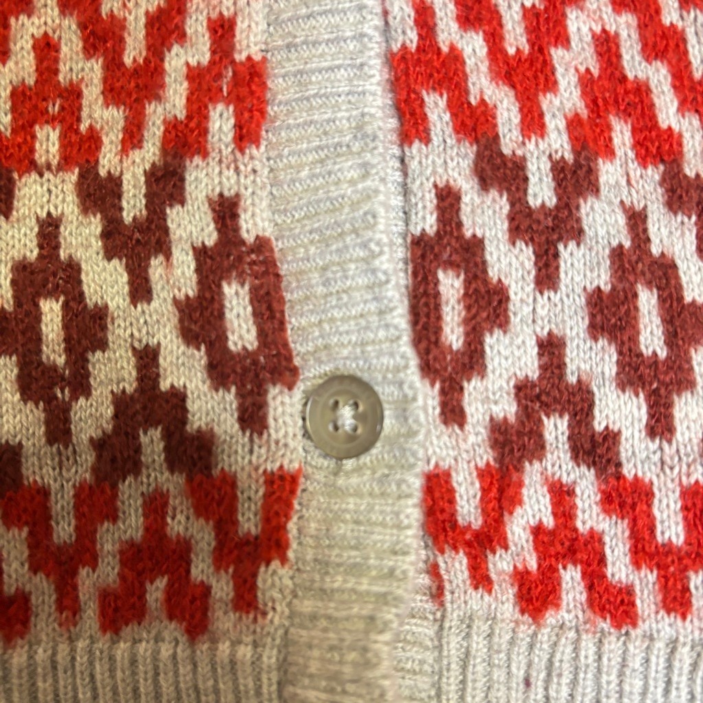 Cozy Eddie Bauer Fair Isle button-front cardigan in women’s size Small. Light heather gray with a multi-color Fair Isle pattern (blue, olive, peach, red). Soft mid-weight knit with a blended fabric that includes cotton, nylon, acrylic, and a touch of mohair for texture and warmth. Perfect for fall + winter, holiday outfits, or casual everyday wear. Size: Women’s Small Color: Heather Gray + Multicolor Fair Isle Material: • 46% Cotton • 45% Nylon • 7% Acrylic • 2% Mohair Season: Fall/Holiday 2017 Condition: Excellent pre-owned. No flaws noted. Smoke-free home. MEASUREMENTS: • Pit to Pit: 17.5” • Length: 24” • Sleeve: 25” (Measurements taken flat.) ⸻ CARE: Machine wash cold, delicate. Lay flat to dry. Warm iron as desired. ⸻ KEYWORDS: eddie bauer sweater, fair isle cardigan, winter knit, button front sweater, holiday cardigan, cozy knit, classic winter sweater, patterned cardigan, women’s small, nordic print sweater, cottagecore knit, soft knit cardigan