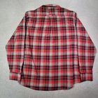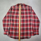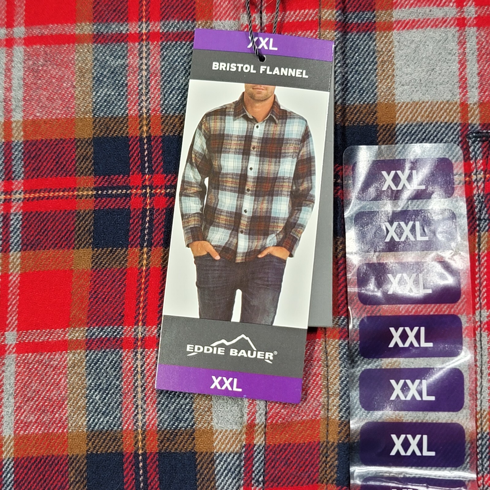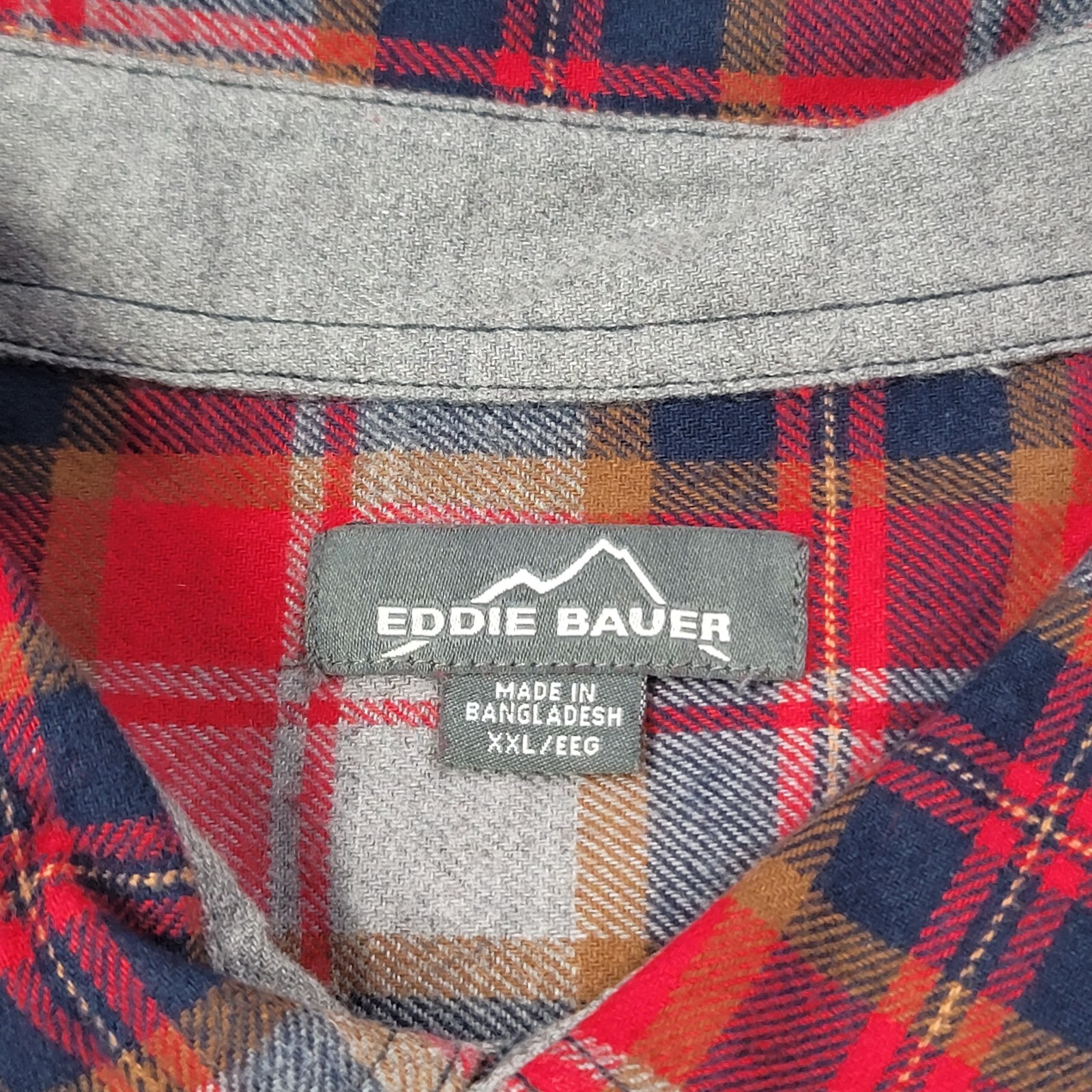 This is a men's Eddie Bauer flannel shirt in size 2XL, featuring a red plaid pattern with a button-up closure and a collared neckline. The shirt has long sleeves and a chest pocket for added convenience. Made of cotton flannel fabric, this shirt has a regular fit and a spread collar style, making it a comfortable and stylish addition to any casual wardrobe.