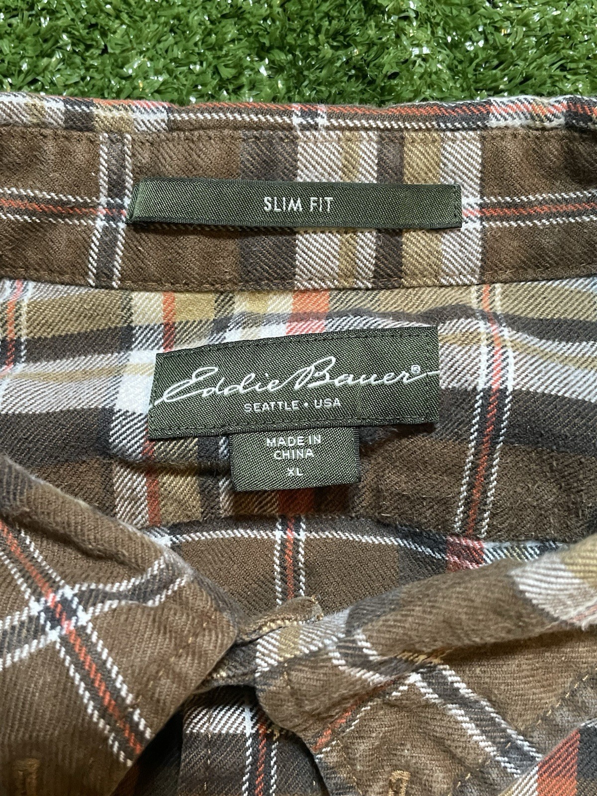 Eddie Bauer Flannel Shirt Mens Medium Xl Brown Plaid Slim Button Down No rips small holes or stains shirt in in great condition. We ship all orders in the same 24hrs Any questions please feel free to ask