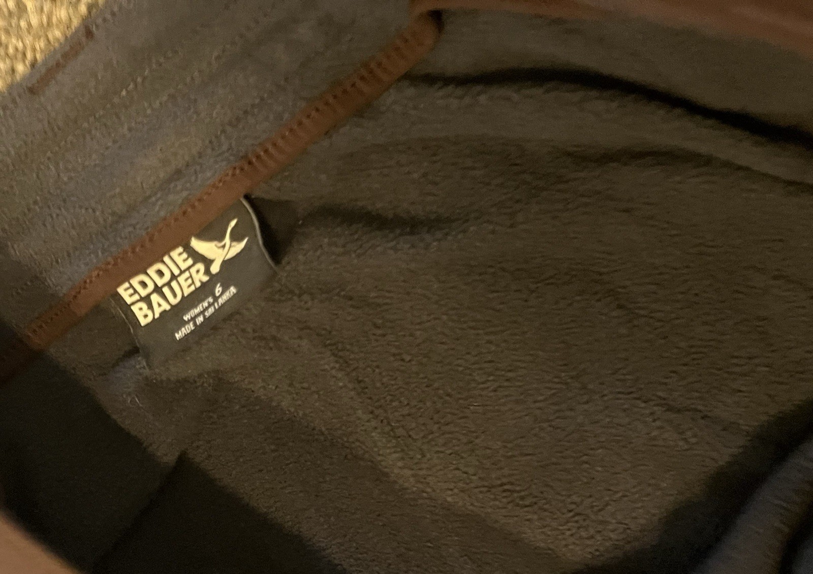 These Eddie Bauer Fleece Lined Cargo Pants for women in size 6 are perfect for outdoor activities like hiking and skiing. The black polyester and spandex material with a fleece lining provides warmth during the colder seasons. The pants feature a zip and button closure, straight leg style, and various pockets for convenience. With a mid rise and regular fit, these pants are both stylish and functional for casual wear, travel, or workwear. Easy to care for with machine washable fabric, these pants are a versatile addition to any nature lover's wardrobe.