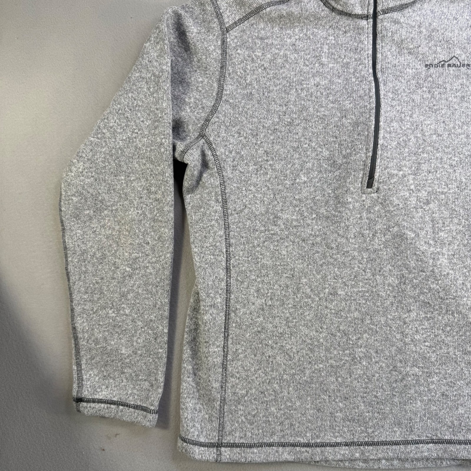 Eddie Bauer Fleece Quarter Zip Pullover Sweater Mens L Gray Heathered Outerwear Discover ultimate comfort and style with this Eddie Bauer Fleece Quarter Zip Pullover Sweater . Designed for the active individual, this sweater offers a perfect blend of warmth, durability, and casual sophistication. The heathered gray fabric provides a versatile look that pairs effortlessly with jeans or athletic wear, making it an ideal choice for outdoor adventures, casual outings, or simply relaxing at home. The quarter-zip design allows for adjustable ventilation, ensuring you stay comfortable in changing conditions. Eddie Bauer is renowned for its commitment to quality and timeless design, and this piece is no exception. Whether you're hitting the trails or running errands, this Eddie Bauer pullover will be a go-to favorite in your wardrobe. Key Features & Benefits: Soft Fleece Fabric: Provides exceptional warmth and a cozy feel against the skin. Quarter-Zip Closure: Allows for easy on-and-off and adjustable ventilation to regulate body temperature. Durable Construction: Expertly crafted by Eddie Bauer with reinforced stitching for long-lasting wear. Heathered Gray Design: A classic and versatile color that complements various outfits. Relaxed Fit: Offers comfort and freedom of movement for everyday activities. Stylish Branding: Features the iconic Eddie Bauer logo embroidered on the chest for an authentic look. This versatile sweater is perfect for a variety of occasions. Wear it as a layering piece over a t-shirt on cooler days, or under a jacket for extra warmth during winter months. The durable fleece material is designed to withstand regular wear and washing, maintaining its softness and shape over time. The heathered texture adds visual interest, making it more than just a basic pullover. It's a practical and stylish addition to any man's casual wardrobe, embodying the spirit of adventure and outdoor exploration that Eddie Bauer is known for. What's included: 1 x Eddie Bauer Fleece Quarter Zip Pullover Sweater Item Specifics: Condition: New without tags Brand: Eddie Bauer Color: Gray Size: L Material: Polyester Style: Quarter Zip Type: Pullover Department: Men Features: 1/4 Zip Closure: Pullover Theme: Outdoor Country/Region of Manufacture: China Performance/Activity: Hiking Accents: Logo Pattern: Heathered Vintage: No Neckline: Mock Neck Fit: Relaxed Season: Fall Garment Care: Machine Washable Listed with EasyLister AI