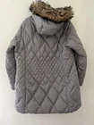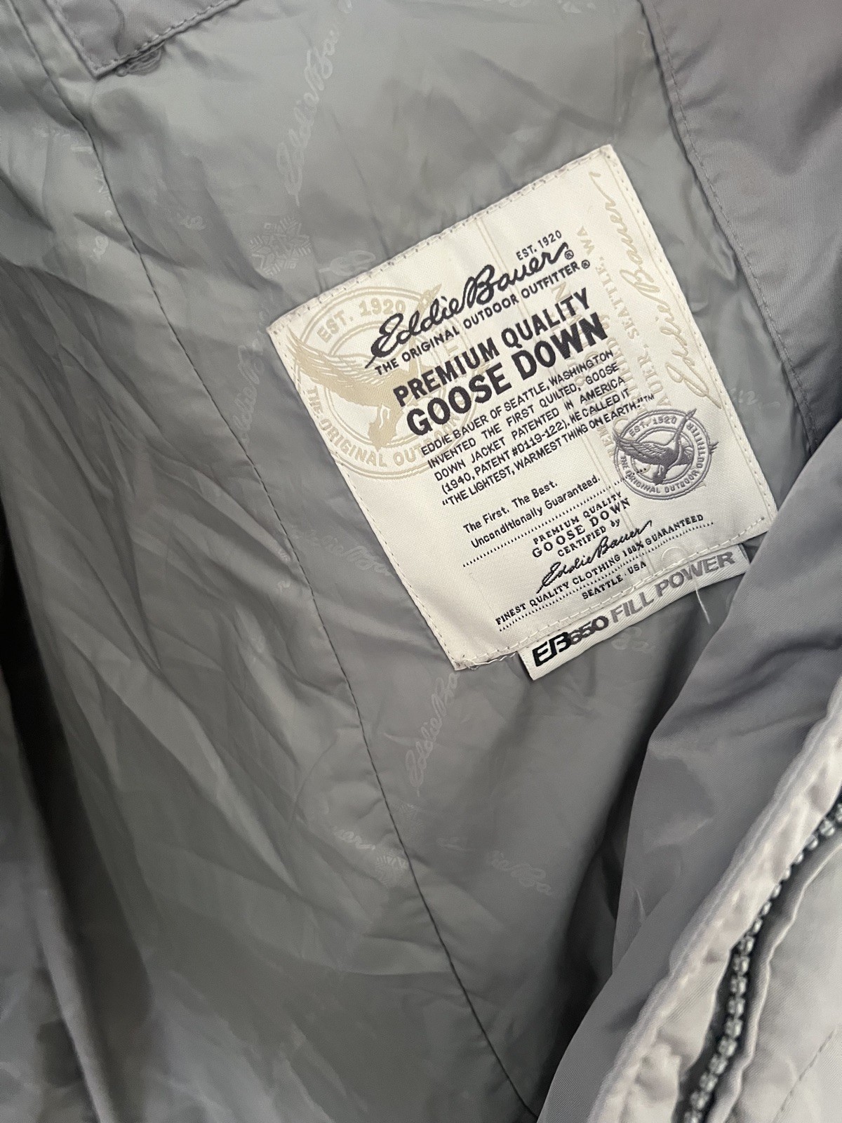 Eddie Bauer Goose Down Woman’s Arctic Coat XXL Parka Faux Fur Lined Hood 35” L 26” pit to pit EB650 fill power Detachable belt Front pockets Great overall condition! Fur hood is very lightly matted and there are some spots and stains through the coat. Winter, cold weather, ski, parka, puffer jacket, gray, silver