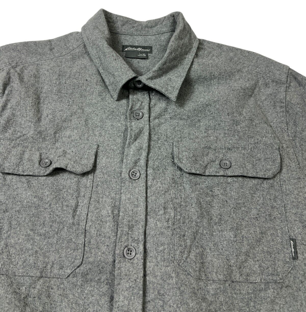 Eddie Bauer XL Tall Plaid Flannel Shirt in Blue Cotton Long Sleeve Relaxed Fit