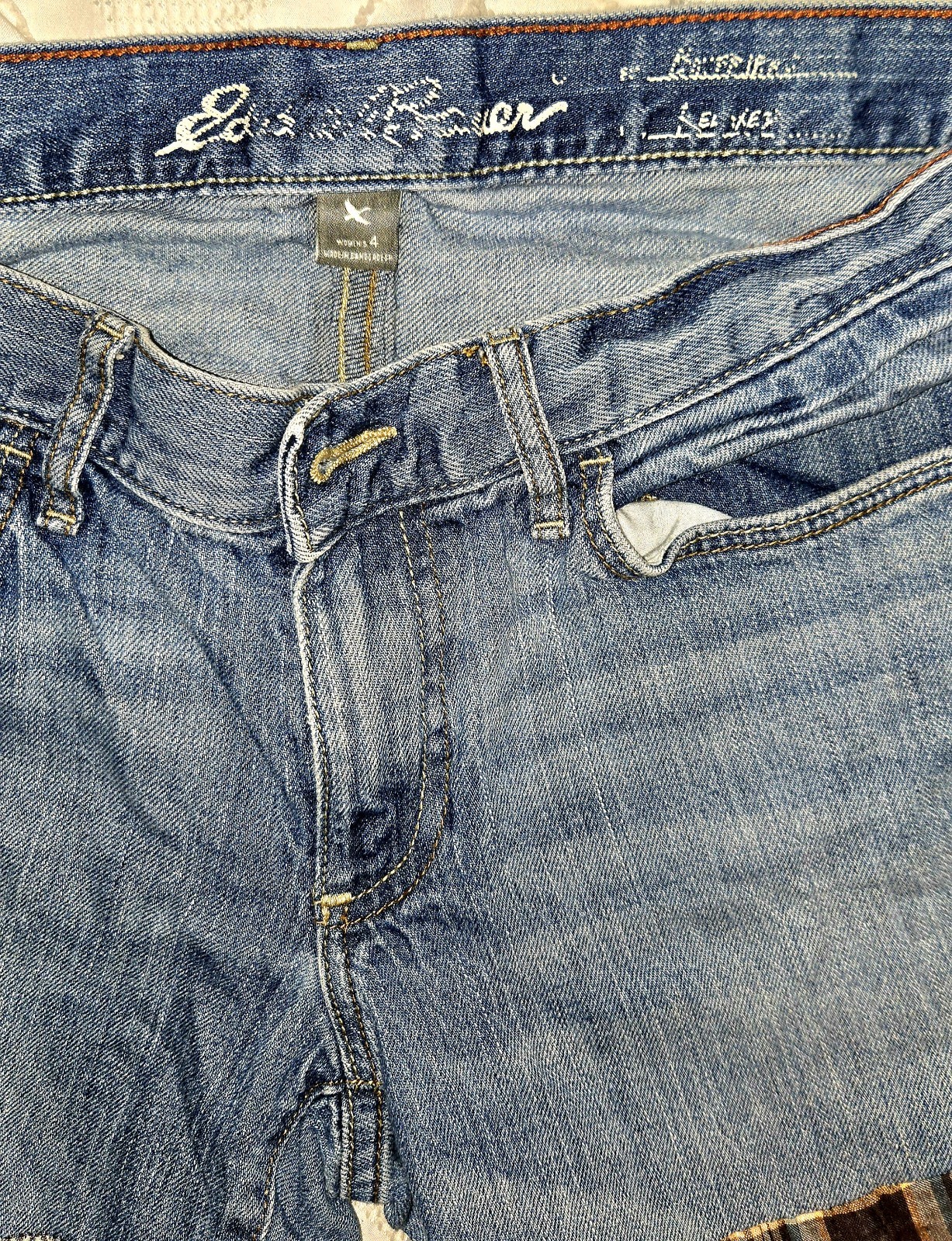 Craft your casual look with the Eddie Bauer Jean and Plaid Vintage Pants, designed for women who appreciate a blend of comfort and style. Tailored to fit a size 4, these pants showcase a classic plaid pattern complemented by a chic cropped denim fabric. The straight-leg style and flat front design offer a timeless appeal, making them a versatile addition to any wardrobe. Functionality meets fashion with features like a secure zip closure, accented with buttons and a zipper for added flair. Machine washable for easy care, these pants are ideal for various casual occasions throughout spring, summer, and winter. Step out in confidence with a garment that promises both durability and style.