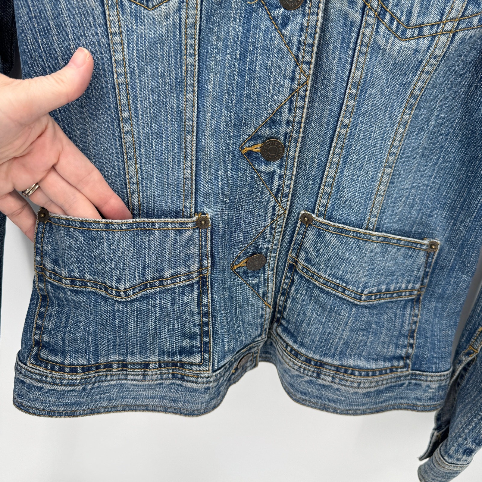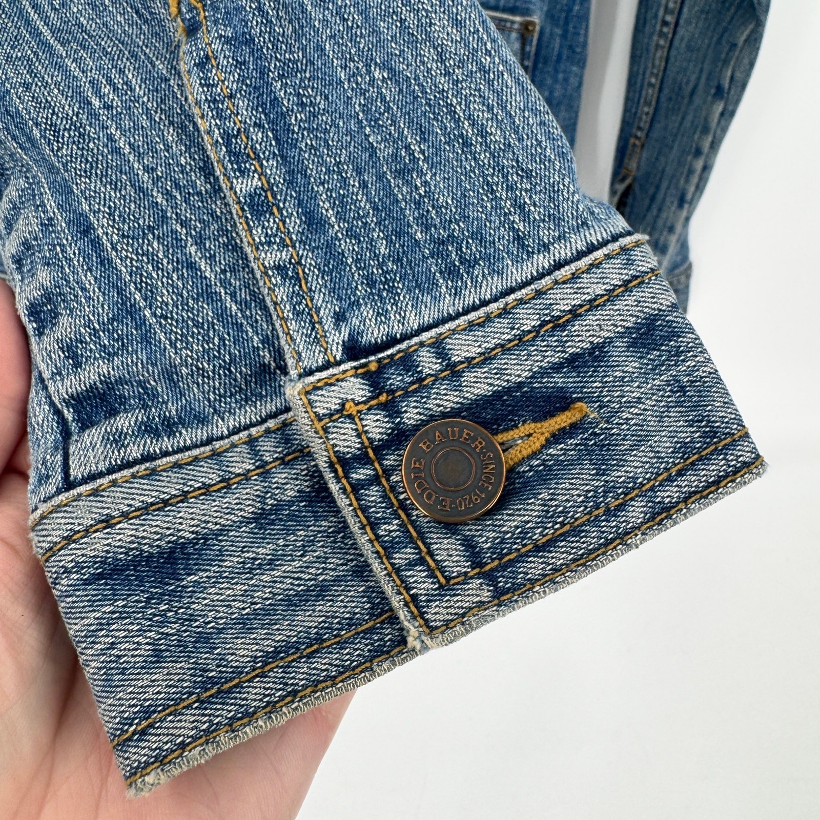 Eddie Bauer Jean Jacket Womens Medium Blue Denim Trucker Classic + Pockets Button Up Faded Wash Vintage Very good condition, see all pictures for views. •Pit to pit: 19" •Shoulder to hem: 23" Thank you for your purchase, we appreciate you!