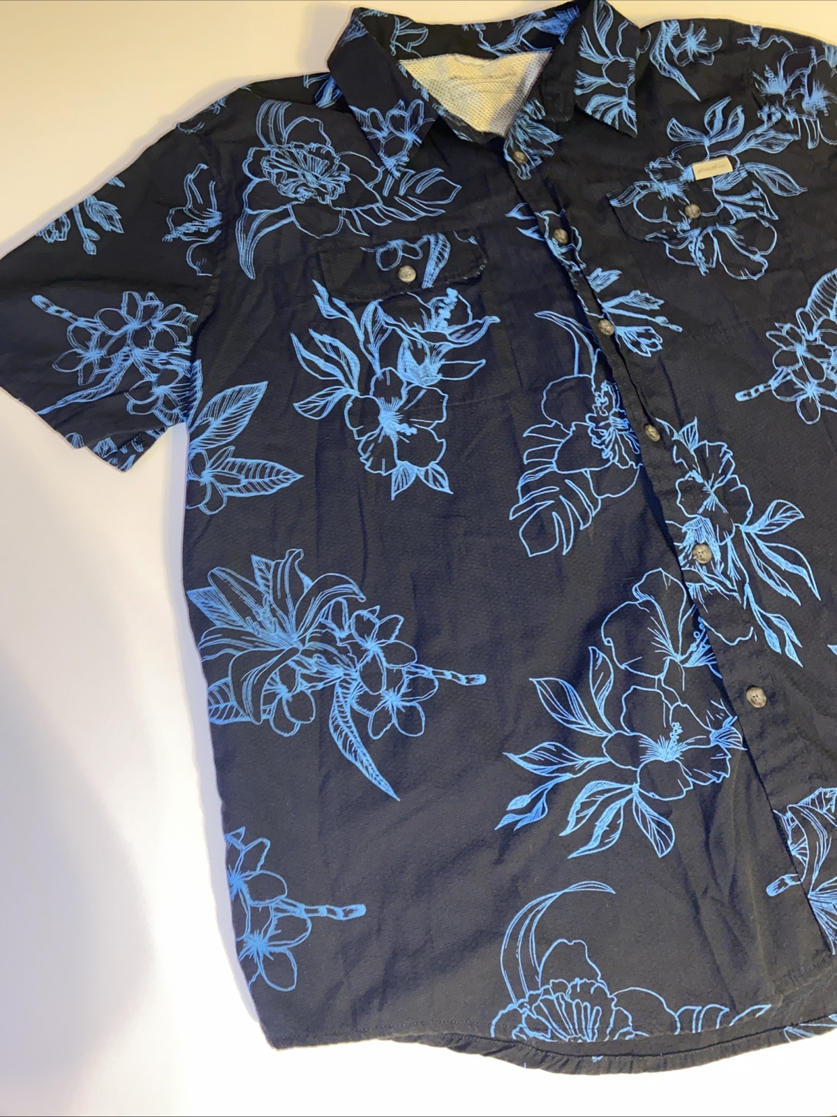$ 18.99LL Bean Mens Medium Blue Geometric Tribal Print Organic Cotton Button Up Shirt