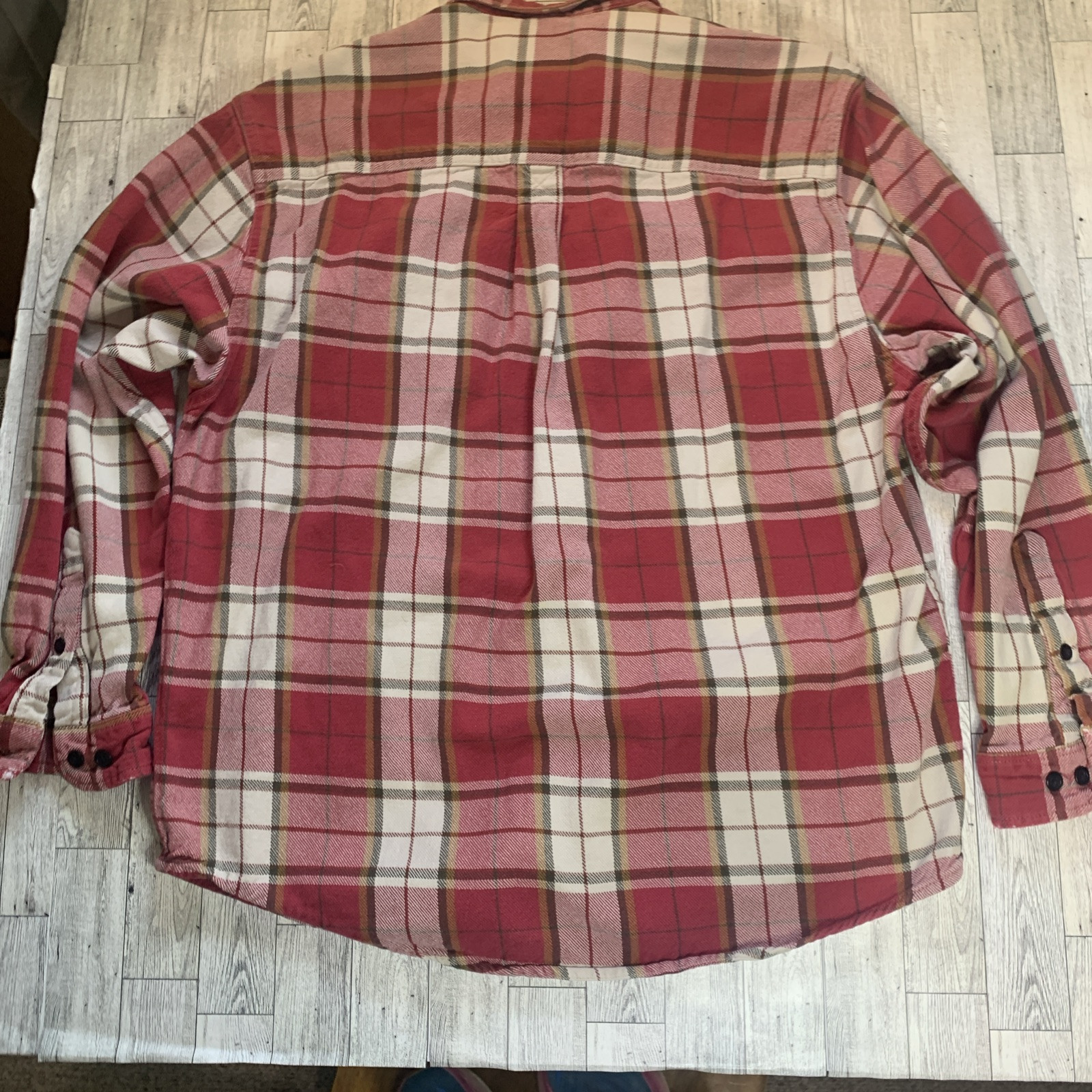 This Eddie Bauer shirt is a fantastic heavyweight cotton button-down—super comfortable, durable, and the red plaid looks sharp. Perfect for layering or wearing on its own. Great condition, just as described. Love the classic fit! Granny’s Shop made buying easy—highly recommend!