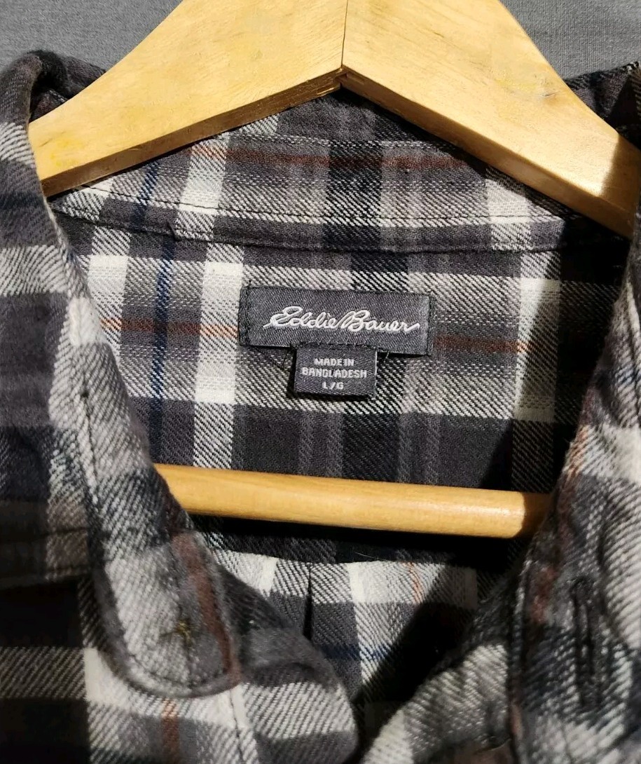 This Eddie Bauer flannel shirt is in fantastic preowned shape—no rips, stains, or major flaws, just subtle wear. The midweight plaid fabric feels durable yet cozy, perfect for hiking or everyday wear. The chest pocket is handy, and the fit is spot-on with a 22" pit-to-pit and 29" length. Ships fast from a smoke-free home, and the seller is open to offers. Great find for a quality flannel!