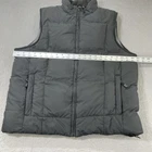 Eddie Bauer Vest Mens Large Black Puffer Premium Goose Down Quilted Outdoors Condition: Gently worn, no visible flaws or stains. Zippers functional and clean inside. No holes, rips, or tears noted. Shell: 55% polyester, 45% nylon; Lining: 100% nylon; Fill: Goose Down Premium Goose Down fill for exceptional warmth and lightweight comfort Classic quilted puffer design with stand collar Full zip front closure with two zippered front pockets Interior drawcord at hem for adjustable fit Tag size: Large (Mens) Approximate flat measurements shown in photos: Pit to pit ~26", Back length from collar seam ~29" Color: Black exterior with gray lining Branded Eddie Bauer patch and inside label Great versatile outerwear vest for hiking, travel, or everyday winter use