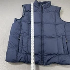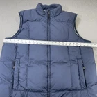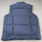 Eddie Bauer Vest Mens Large Blue Premium Goose Down Puffer Sleeveless Winter Warm Condition: Good used condition with minor flaws—shows some light stains or marks near the hem as pictured. No holes or major defects noted. Zippers function properly. Shell and lining: 100% polyester. Body fill: Goose down. Premium goose down insulation for exceptional warmth and lightweight comfort. Full front zip closure with stand collar for extra protection. Two zip pockets for storage and hand warmth. Large size. See photos for approximate measurements: 28.5 inches length, 26.5 inches pit to pit. Signature Eddie Bauer patch label inside. Classic outdoor and casual layering piece. Color: Blue exterior with light gray lining.