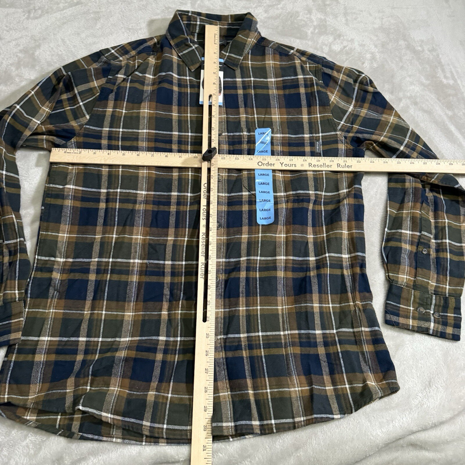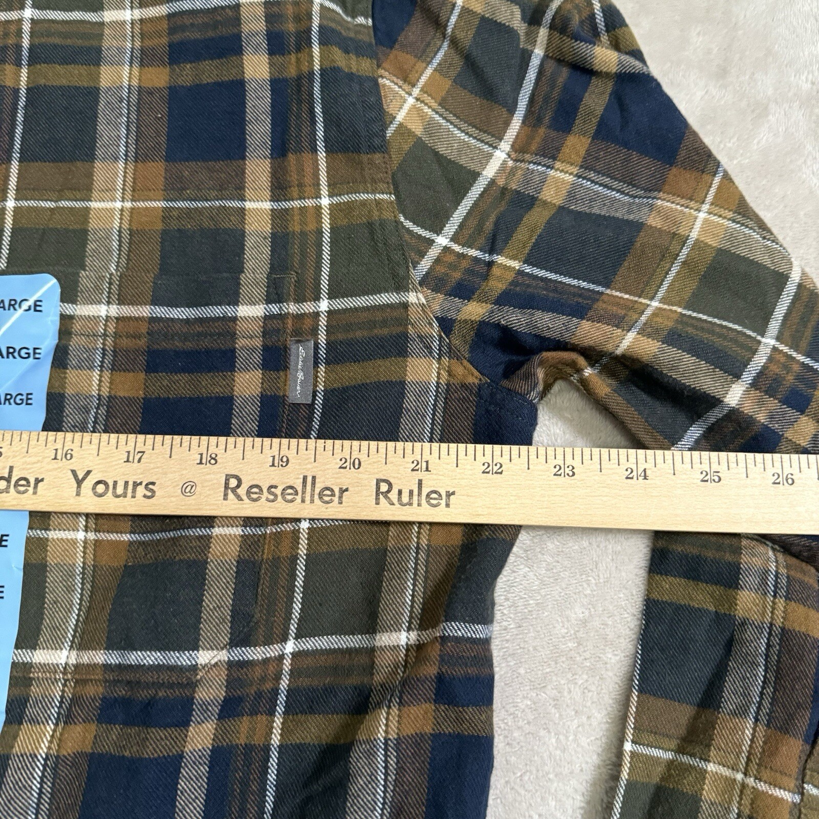 This Eddie Bauer men's button-down shirt is a must-have for any wardrobe. With a plaid pattern and multicolor design, it's perfect for casual occasions all year round. The shirt features long sleeves, a collared neckline, and a button closure for a comfortable and stylish fit. Made from 100% cotton flannel, this shirt is lightweight, breathable, and perfect for all seasons. It's easy to care for and machine washable, making it a practical choice for any busy man's wardrobe. The shirt is available in size L and has a regular fit. Don't miss out on this modern and stylish shirt that's sure to become a favorite in your collection.
