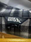 The Eddie Bauer Men’s Tall XL Gray & Black Plaid Flannel Shirt is a classic and stylish button-up shirt made from 100% cotton flannel. Featuring a collared neckline, long sleeves, and a relaxed fit, this shirt is perfect for casual or workwear occasions in the winter, fall, or spring. The black plaid pattern adds a touch of outdoor charm, while the brand’s signature quality ensures durability and comfort. Easy to care for with machine washable instructions, this shirt also includes convenient pockets and is a versatile addition to any man's wardrobe.