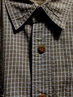 This Eddie Bauer shirt is a must-have for any fashion-forward man. Featuring a blue color and a check pattern, this shirt is perfect for any occasion, whether it's a casual day out or a business meeting. Made from a blend of polyester, nylon, and cotton, it is lightweight, packable, and stretchy, making it easy to care for and quick-drying. With a button-down collar and short sleeves, this shirt is perfect for any season, whether it's winter, summer, fall, or spring. It also features a mini check pocket and embroidered accents, adding a touch of style to an already stylish shirt. Whether you're a fan of punk, colorful, or preppy fashion, this Eddie Bauer shirt is sure to please.