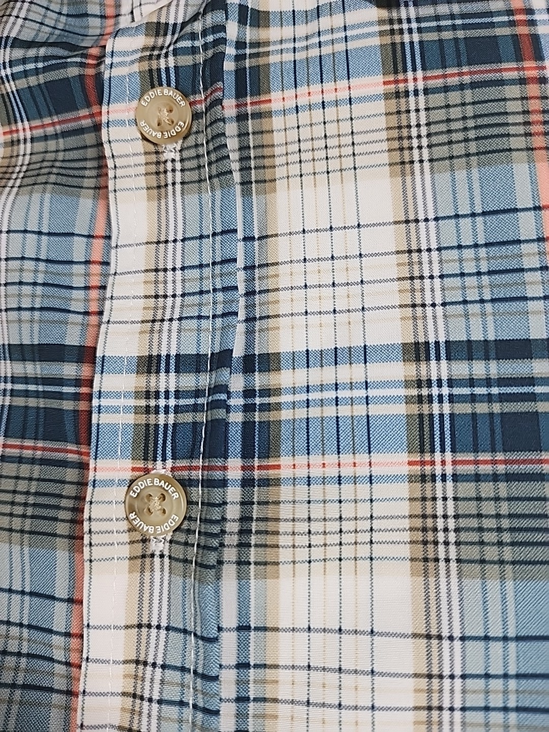 Pre-Owned... See Pics for Condition and Measurements.. Eddie Bauer Mens XL Stretch Plaid Long Sleeve / Button Up Shirt Lightweight