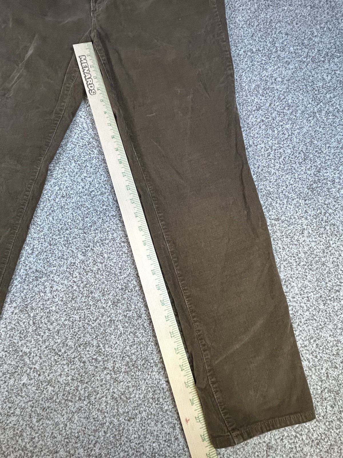 The Eddie Bauer Women's Brown Corduroy Pants in size 16 are a stylish and comfortable choice for casual wear. Made from a blend of spandex and cotton, these slim leg pants feature a flat front design with a zip closure and mid-rise fit. With a straight leg style and chino look, these pants offer both a fashionable edge and a practical stretch for added comfort. Perfect for any season, these pants are a versatile addition to any woman's wardrobe.