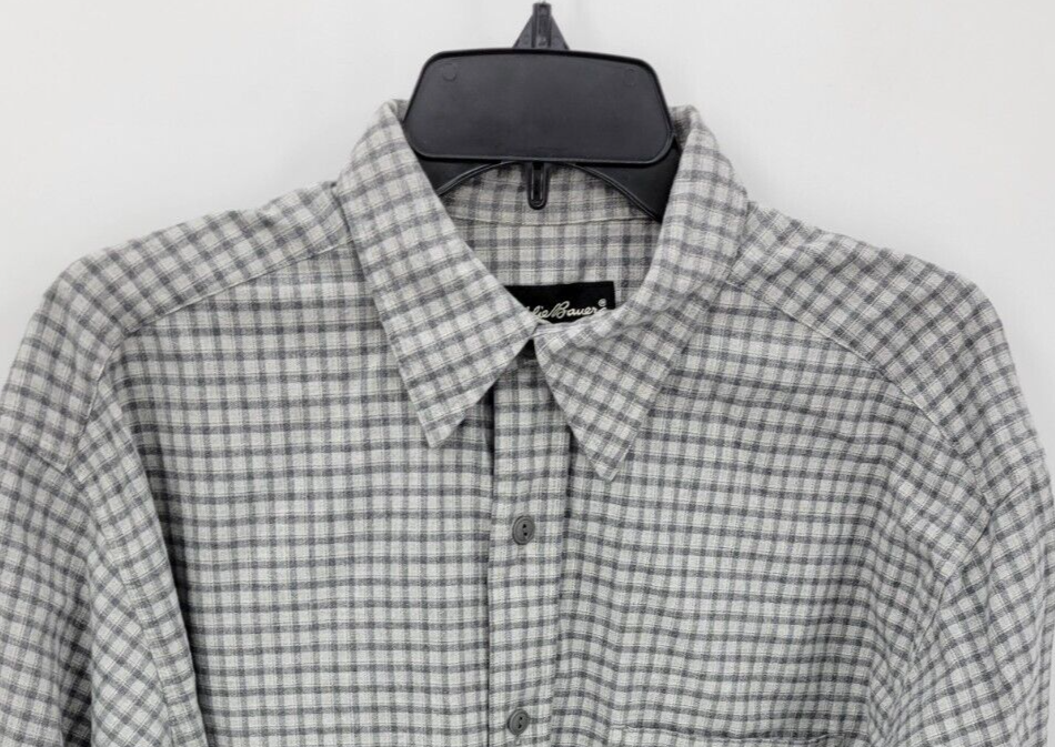 Eddie Bauer Shirt Mens Medium Gray Plaid Long Sleeve Button Up Cotton Casual Please note: Please see the following measurements in photos. The first measurement is the total length measured from the shoulder to bottom hem. The second measurement photo is the armpit to armpit measurement. All measurements were taking with item laying flat. Please review all photos and ask any questions about the item before purchasing. All measurements are taken with garment laying flat. This item will ship via USPS 2-3 day mail with a tracking number for confirmation. We ship every day so expect a quick delivery ! Thank you for your business and if you have any questions, please feel free to contact us and we will respond quickly. + FAST SHIPPING We take pride in offering the best selection of men's and women's clothing. All items are washed per eBay standards. Thank you so much for visiting our store and we look forward to your business.
