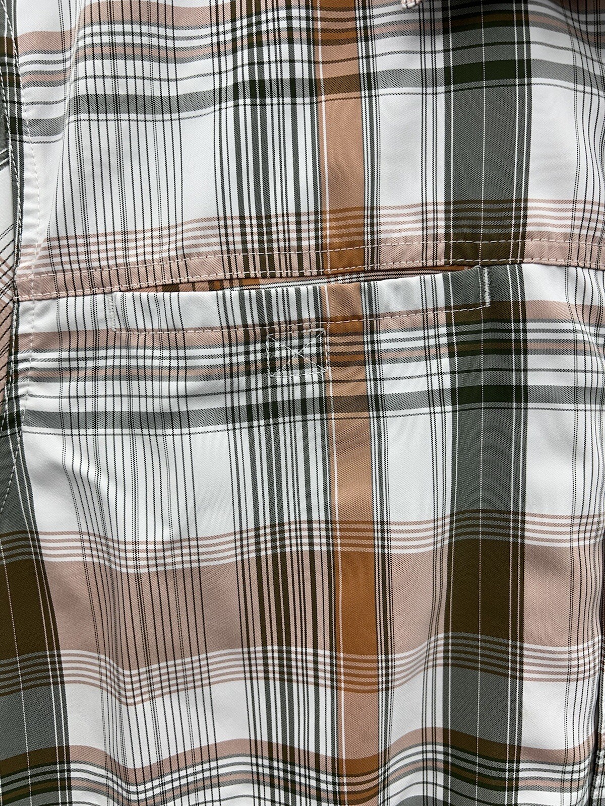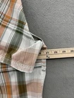 The Eddie Bauer Men's XL Orange Green Cream Plaid Short Sleeve Button Up Shirt is a classic and versatile piece suitable for various occasions. Made of durable nylon material, this shirt features a collared neckline, button closure, and short sleeves, perfect for travel, casual outings, or workwear. The multicolor plaid pattern adds a touch of outdoor charm, while the pocket details enhance functionality. Ideal for the summer, fall, and spring seasons, this machine washable shirt is a timeless addition to any man's wardrobe.