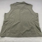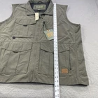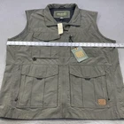 Brand: Eddie Bauer (The Original Outdoor Outfitter) Style/Model: Adventurer Ripstop Vest Tag size: Mens 2XL (XXL) Color: Olive/Dark Peat (DKPEAT as shown on tag) Materials: Shell 59% cotton / 41% nylon; Lining 100% polyester mesh Features: Water-repellent, fast dry, easy care (per hang tag) Design details: Full-zip front; stand collar; breathable mesh lining Storage: Multiple front pockets including a zip chest pocket and flap/cargo pockets Fabric: Durable ripstop cotton/nylon blend for outdoor/travel use Branding: Eddie Bauer woven neck label and logo patch at lower front Notes: New with original hangtags and retail tag attached