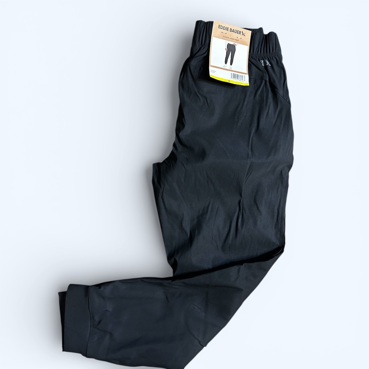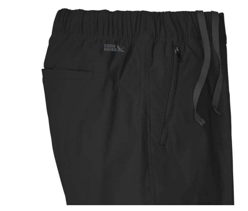 FreeShade® UPF 50+ Functional Pockets Elastic Waistband with Drawstring Features: Eddie Bauer® Zipper at front pockets 2-Way stretch StormRepel® durable water repellent finish Fleece lining Stretch fabrication Made in Sri Lanka Content: Shell: 95% Nylon | 5% Spandex Lining: 100% Polyester Approximately 135 GSM Lightweight Sizing: Sizes: 2-16 Size Conversion: XS = 2 | S = 4-6 | M = 8-10 | L = 12-14 | XL = 16-18 | XXL = 20-22 Model is 5'10" wearing size 4 Model is 5'10" wearing size 12 Model is 5'10" wearing size 16 Care Instructions: Machine washable delicate with like colors Do not use fabric softeners Tumble dry low Remove promptly Cool iron as desired Do not bleach Do not dry clean