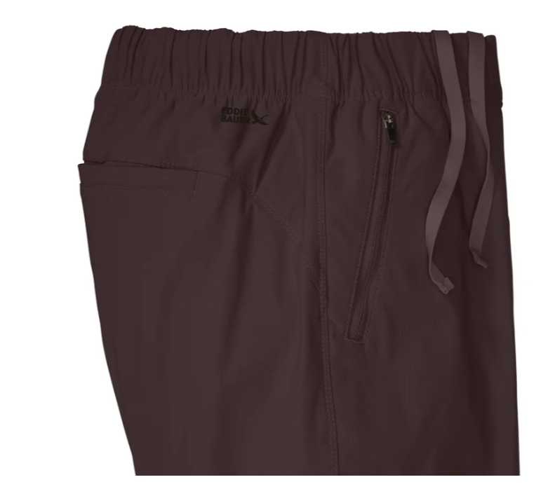 FreeShade® UPF 50+ Functional Pockets Elastic Waistband with Drawstring Features: Eddie Bauer® Zipper at front pockets 2-Way stretch StormRepel® durable water repellent finish Fleece lining Stretch fabrication Made in Sri Lanka Content: Shell: 95% Nylon | 5% Spandex Lining: 100% Polyester Approximately 135 GSM Lightweight Sizing: Sizes: 2-16 Size Conversion: XS = 2 | S = 4-6 | M = 8-10 | L = 12-14 | XL = 16-18 | XXL = 20-22 Model is 5'10" wearing size 4 Model is 5'10" wearing size 12 Model is 5'10" wearing size 16 Care Instructions: Machine washable delicate with like colors Do not use fabric softeners Tumble dry low Remove promptly Cool iron as desired Do not bleach Do not dry clean