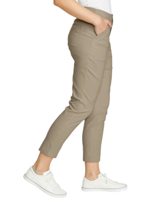 UPF 50+ Sun Protection Performance Stretch Fabric Features: Eddie Bauer® Moisture-shedding finish Functional pockets Made in Madagascar Content: 95% Nylon | 9% Spandex Approximately 175 GSM Lightweight Sizing: Sizes: 4 - 16 Size Conversion: S = 4-6 | M = 8-10 | L = 12-14 | XL = 16 Inseam (in): 28 Model is 5’10” wearing size 4 Model is 5’10” wearing size 12 Care Instructions: Machine wash cold delicate with like colors Do not bleach Do not use fabric softener Tumble dry low Remove promptly Cool iron as desired Do not dry clean Note: The digital images we display have the most accurate color possible. However, due to differences in computer monitors, there may be variations in color between the actual product and your screen.