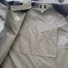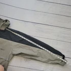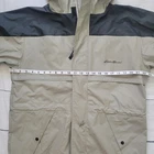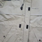 Eddie Bauer Size M Hooded PVC Nylon Waterproof Rain Jacket Women's Waist Cord Gray Brown Designed to fit over layers. Gray and black of 70% PVC and 30% nylon. Adjustable hood draw cord. Adjustable waist and hem cords. Adjustable cuffs. Wrap around mid flaps with inside mesh for ventilation. Both hook and loop and zip closure -Good, pre-owned condition. -1 small stain on front zipper cover panel. Shown in last photo. May come out with additional stain treatment. Sold as is and priced to reflect condition Measurements included in photos - please inquire if more are needed. All offers considered - make one today! Style Profile: Outdoors, Camping, Hiking, Workwear, Layer, Waterproof