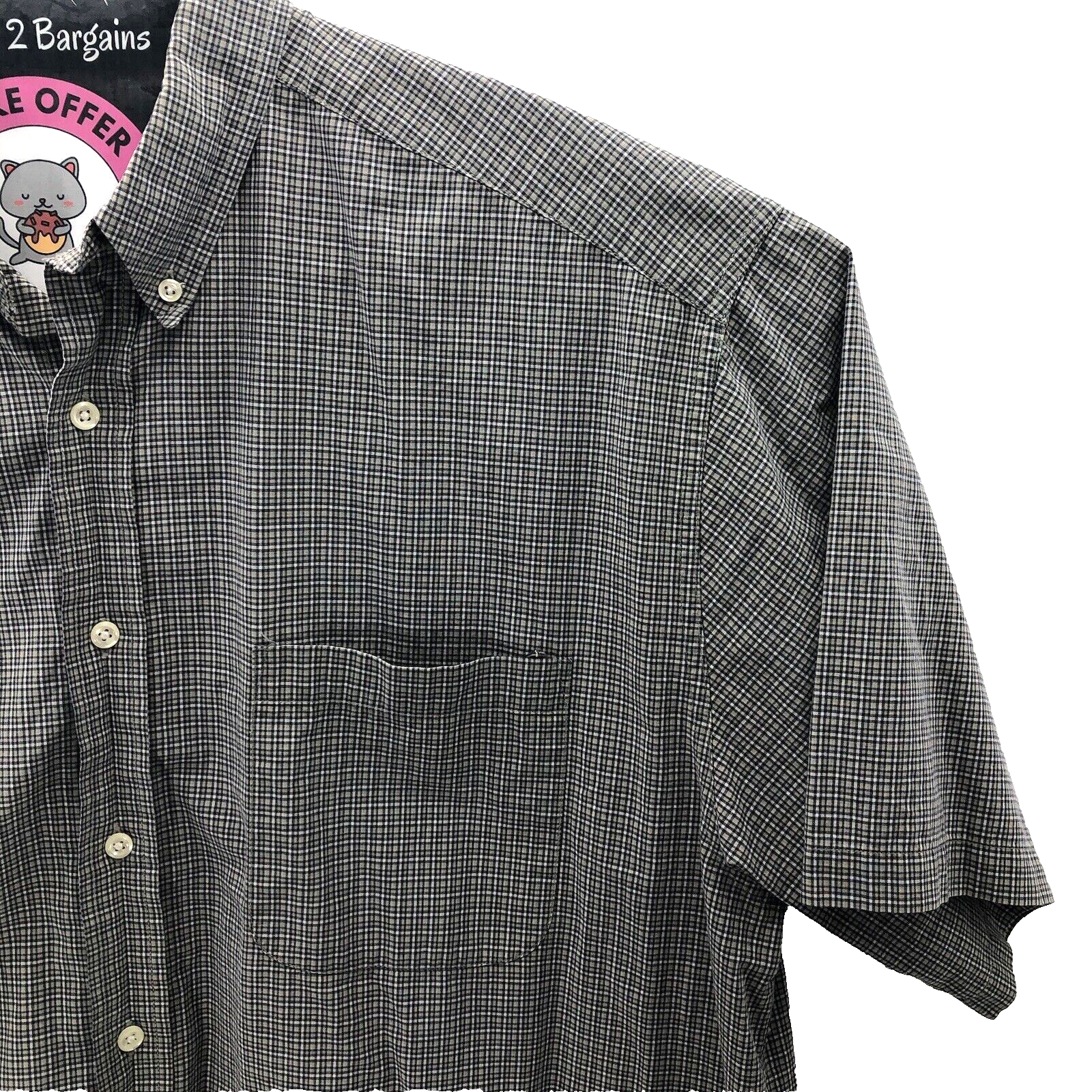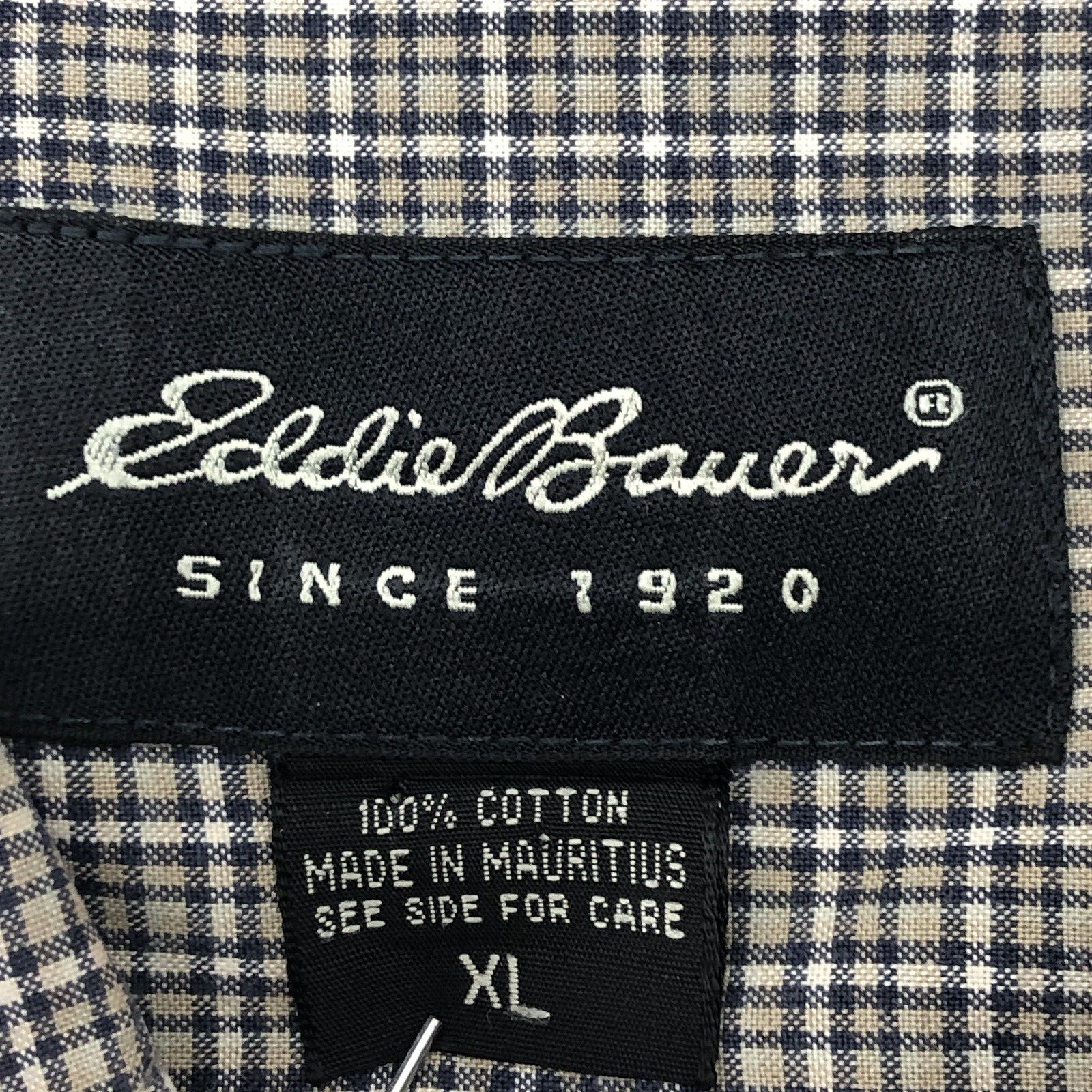 This Eddie Bauer shirt in size XL features a classic check pattern in shades of gray and brown. The short sleeves and button closure make it a versatile choice for any occasion, while the woven cotton fabric ensures breathability and comfort. With accents like buttons and pockets, this shirt is perfect for the stylish and practical man who values both fashion and functionality. Whether you're going for a cowboy or outdoor look, this shirt is sure to fit the bill.
