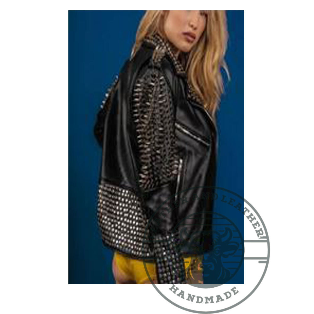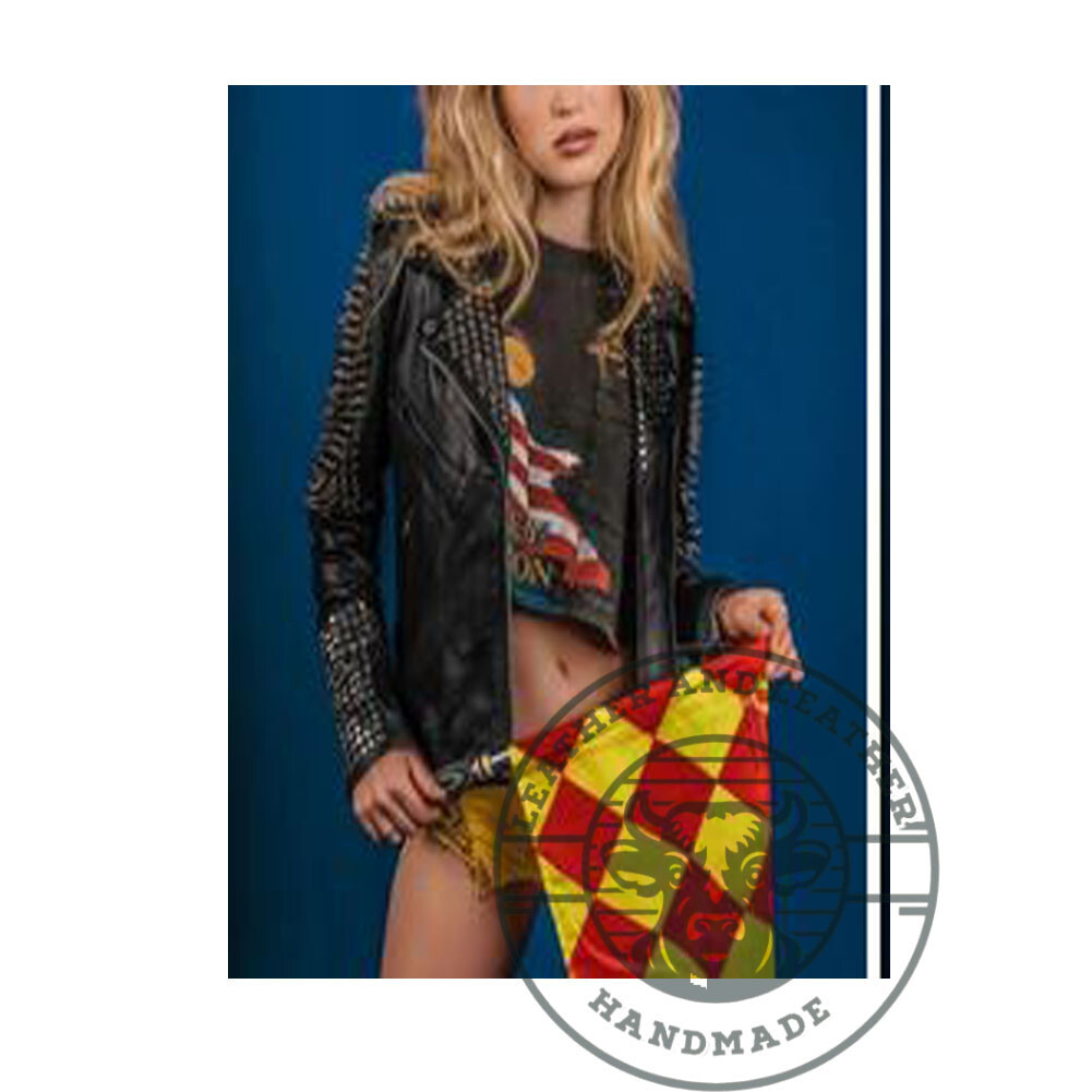 $ 110.88Stylish White Handmade Studded Leather Jacket for Women