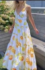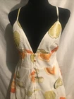 Step out in style with the Edie Parker X J.Crew Button-Front Tiered Maxi Dress, a vibrant addition to your summer wardrobe. The playful pattern of limes and oranges sets a cheerful tone, perfect for casual occasions. The sleeveless V-neck design offers a graceful silhouette, ensuring you look effortlessly chic at any gathering. Crafted from organic cotton, this lightweight dress promises breathable comfort, and its smocked features provide a flattering fit. Lined for extra coverage, the dress is machine washable, making it both a practical and stylish choice for sunny days and balmy evenings. Measure: Bust 14” Waist 15” Lenght 45 in It comes from a smoke free home. New, original price price was $198.00