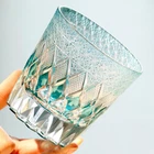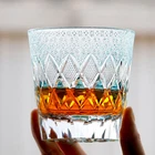 Product Description: Height:95mm TD:92 mm Capacity:300ml/10oz HAND-BLOWN AND HAND-CUTTING: The elaborate geometrically carved glass is admirable by experienced artificers handwork of carving and polishing. Hand-blown glass may have some small bubbles and small black spots, which are characteristic of hand-made. The craftsman made the glass by hand, so they are slightly different one by one. LEAD-FREE CRYSTAL MATERIAL: This kind of glass cup is made from Lead-free Crystal glass, this ultra clear crystal glass body helps to appreciate the color of liquor easier, luxury, gorgeous and exquisite, give your the best whiskey tasting experience. PERFECT LARGE SIZE: The straight line deep cut rock style whiskey glasses holds 7-8 Ounce Fluid, the first choice for every whisky lover. ELEGANT DESIGN: Diamond cut design to aerate and keep the aroma in the glass for optimum nosing. True elegance will always be in style! PERFECT GIFT : Delivered in a stenciled gift box. This elaborate and high quality glass will be your favorite item. Adding for yourself, it will be perfect gift or souvenirs for family, friends, and your work associates! NOT microwave and dishwasher safe. Please use soft cloth or sponge when you wash.