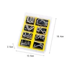 Specifications High-concerned chemical None Material Metal Puzzle Style Tangram/Jigsaw Board Recommend Age 14+y Origin Mainland China π§© 8-Piece Metal Wire Puzzle Set β Brain Teasers & IQ Boost π§© π Classic & Fun Puzzles This set includes 8 different metal wire puzzles , combining traditional Chinese culture with fun challenges . Perfect for kids and adults who love brain teasers. π Improve IQ & EQ Solving each puzzle enhances creative thinking , problem-solving skills, and patience. Feel the sense of achievement after completing each puzzle! β¨ High-Quality Material Made from durable metal with exquisite processing , ensuring long-lasting use and smooth handling. π¨ Two Styles Available Style 1: Silver Style 2: Bronze π Perfect Gift Idea Ideal as a gift for children, puzzle enthusiasts, or family entertainment . Fun and educational for all ages! π¦ Package Includes 1 Γ Metal Wire Puzzle Set (Retail Packed, 8 Puzzles) β οΈ Notes Diagrams included for solving guidance if needed. Great for personal challenge or group fun.