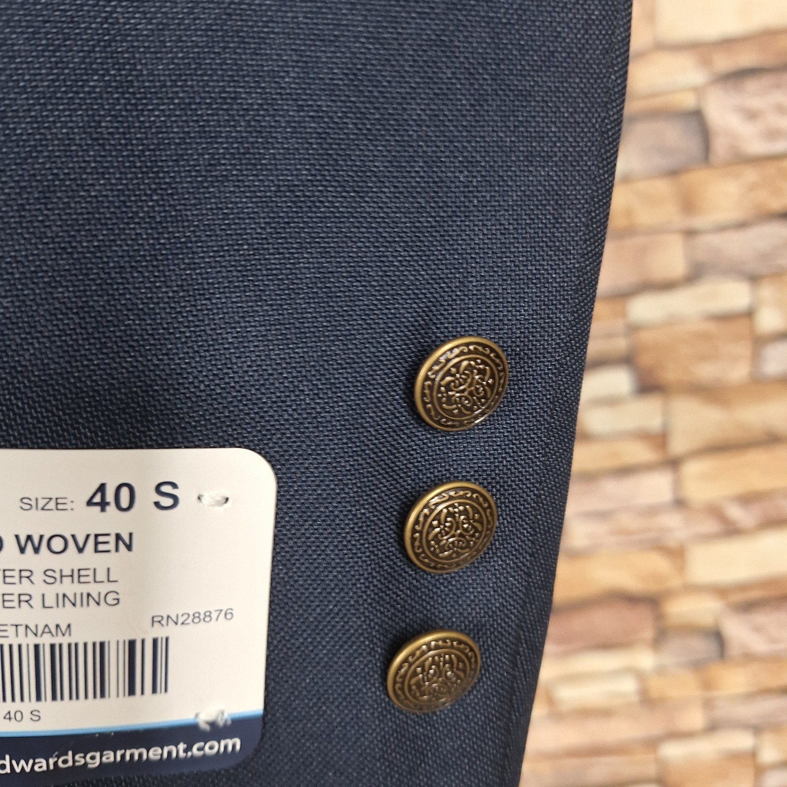 Edwards Jacket Blazer Mens 40S Navy with Brass Buttons NWT NWT Shirt Size on Label 40S Shoulder- Hem 28.50'' Shoulder- Shoulder 19.50'' Shoulder- Wrist 24.00'' Armpit- Armpit 22.00'' 20.50'' Everything ships within a day. Spot cleaned according to manufacturer's recommendations. Has a chance of wrinkling in the mail. Feel free to message me with any questions. Thank you very much. 4/16/25