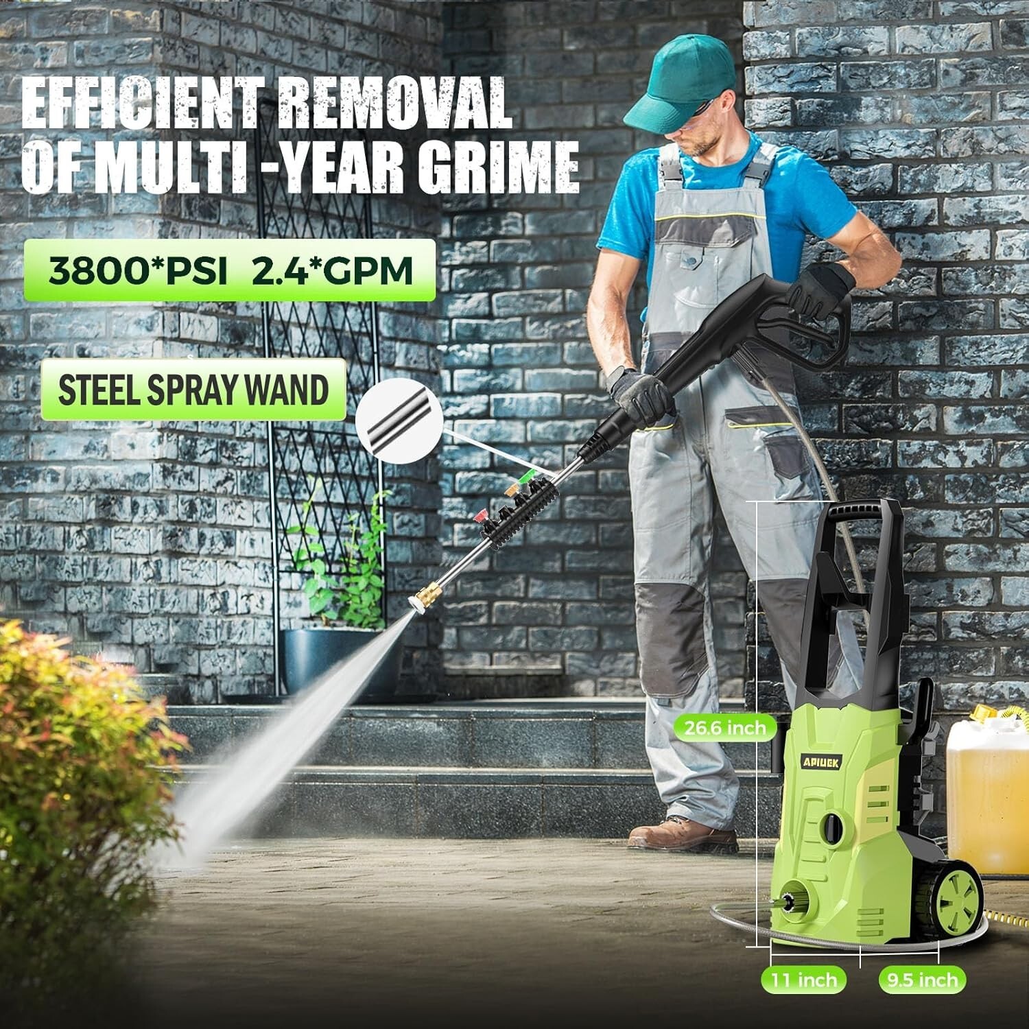 Efficient 3800 PSI Electric Power Washer with Adjustable Soap Tank & Long Hoses ‹ › ‹ › ‹ › ‹ › ‹ › ‹ › ‹ › ‹ › ‹ › Efficient 3800 PSI Electric Power Washer Transform your outdoor cleaning routine with this powerful electric pressure washer, designed for exceptional performance, versatility, and ease of use. Features: Outstanding Power: 14.5-AMP/1800-WATT motor delivers up to 3800 PSI and 2.4 GPM for unparalleled cleaning efficiency. Adjustable Soap Tank: 400ml capacity soap tank allows you to control foam density, ensuring optimal cleaning performance. 4 Pressure Tips: Quick-connect tips (0°, 15°, 25°, 40°) suit any cleaning task from stubborn stains to outdoor furniture. Versatile Water-Sucking Options: Connect directly to a faucet or place the inlet in a bucket or pool for flexible water access. Safety Features: Equipped with a leakage protection plug for enhanced safety during operation. Portable Design: Lightweight and easy to move, making it convenient for various cleaning locations. Benefits: Rapid covering of large areas, saving you time and effort. Thicker, longer-lasting foam for superior cleaning results. Perfect for a range of surfaces, including cars, driveways, windows, and more. Flexible usage options ensure you can clean anywhere. Peace of mind with built-in safety features and reliable customer service. Why choose our Electric Power Washer? Discover the ultimate tool for simplifying your cleaning tasks. With an impressive 3800 PSI output, this electric pressure washer eliminates even the most stubborn dirt effortlessly. Tailor your washing experience with adjustable soap settings and four pressure options to take on any job with confidence. Enjoy the flexibility of multiple water-sourcing methods and a lightweight design for effortless portability. Elevate your cleaning game today with our Electric Power Washer and experience a new standard of cleanliness! Shipping Free & Fast Shipping - We offer free shipping to most of the USA with a normal delivery time of 3-7 days. However, due to the current situation, additional delivery time (up to 3 weeks) may be required for some items. Alternative Carriers - We may use alternative carriers (e.g. USPS, FedEx, UPS, etc.) to ensure your package arrives safely and on time. Due to the use of multiple carriers, we are unable to provide a tracking number automatically. Handling Time - Orders are processed and shipped within 1-2 business days of receiving cleared payment. Shipping Restrictions - Shipping to Alaska, Hawaii, Puerto Rico, Guam, and other US territories may incur shipping charges or delivery restrictions. Please contact us before ordering, or your order can be refunded/cancelled. State Restrictions - There may be restrictions based on your state of purchase. For example, certain items may not be shipped to California due to state regulations. Contact for Tracking Updates - If you require tracking updates or have any concerns about the delivery of your order, please feel free to contact us, and we will be happy to assist you. Return 30-Day Hassle-Free Returns - We want you to be completely satisfied with your purchase. If you are not, you can return the item within 30 days of receiving it for a full refund or exchange. Easy Return Process - To start a return, simply contact us and we will provide you with a prepaid return shipping label and detailed instructions. Restocking Fee - There are no restocking fees for returns. However, the buyer is responsible for return shipping costs if the return is not due to a seller's error. Refund Processing Time - Refunds will be processed within 5 business days of receiving the returned item in its condition. Payment We accept all major credit cards, PayPal, and Apple Pay for your convenience. Your payment information is secure and encrypted to ensure a safe and seamless transaction. Please complete your payment within 3 days of purchase to avoid any delays in shipping. Feedback Your feedback is extremely important to us. We strive to provide the best products and customer service possible. If you are satisfied with your purchase, please take a moment to leave us a positive review. If you have any concerns or issues with your order, please contact us before leaving negative feedback. We are committed to resolving any problems and ensuring your satisfaction. Contact Us If you have any questions or concerns, please feel free to out to our customer support team. You can contact us through the eBay messaging system. We are available Monday to Friday, 9:00 am to 5:00 pm EST, and we will do our best to respond to your inquiry within 24 hours. Buy it now and enjoy a pleasant shopping experience! Unit Quantity: 10.58 lb Features: Adjustable Soap Tank,Powerful 14.5-AMP motor,1800-WATT power,3800 PSI maximum pressure,2.4 GPM flow rate,Adjustable soap tank capacity,Instant foaming effect,4 quick pressure tips,6.6 FT inlet hose,23 FT outlet hose,Leakage protection plug Items Included: Hose,User Manual Material: Plastic,Steel Type: Electric Pressure Washer Power Source: Corded Electric Maximum Pressure: 3800 psi Voltage: 110 V Horsepower: 1 HP Power: 1800 W Soap Tank Capacity: 0.4 L Color: Green Item Height: 26.57 Inches Item Weight: 10.58 lb Unit Type: lb