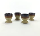 Add a touch of rustic charm to your breakfast table with these handmade ceramic egg cups. The set of four cups features a tan, brown and dark brown farmhouse design that is perfect for all occasions. Each cup measures 2 inches in diameter and 2-1/4 inches in height, making them the perfect size for your boiled eggs. Crafted in the United States, these egg cups are made of high-quality ceramic material that is durable and long-lasting. The country and western theme of these cups make them a great addition to your kitchen, dining, and bar collection. Whether you're a fan of handmade items or simply looking for a unique set of egg cups, this set is sure to impress.