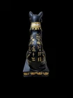 Add a touch of Egyptian mythology to your collection with this stunning Bastet statue. Crafted from stone, this statue features intricate details such as the Eye of Horus and Scarab. The cat goddess Bastet is depicted in a regal pose, showcasing her importance in ancient Egyptian culture. This unique piece was made in Egypt, the birthplace of Bastet worship. It's a must-have for any collector of figurines, cat-themed items, or Egyptian artifacts. Don't miss the chance to own a piece of history.