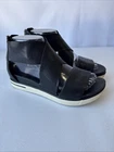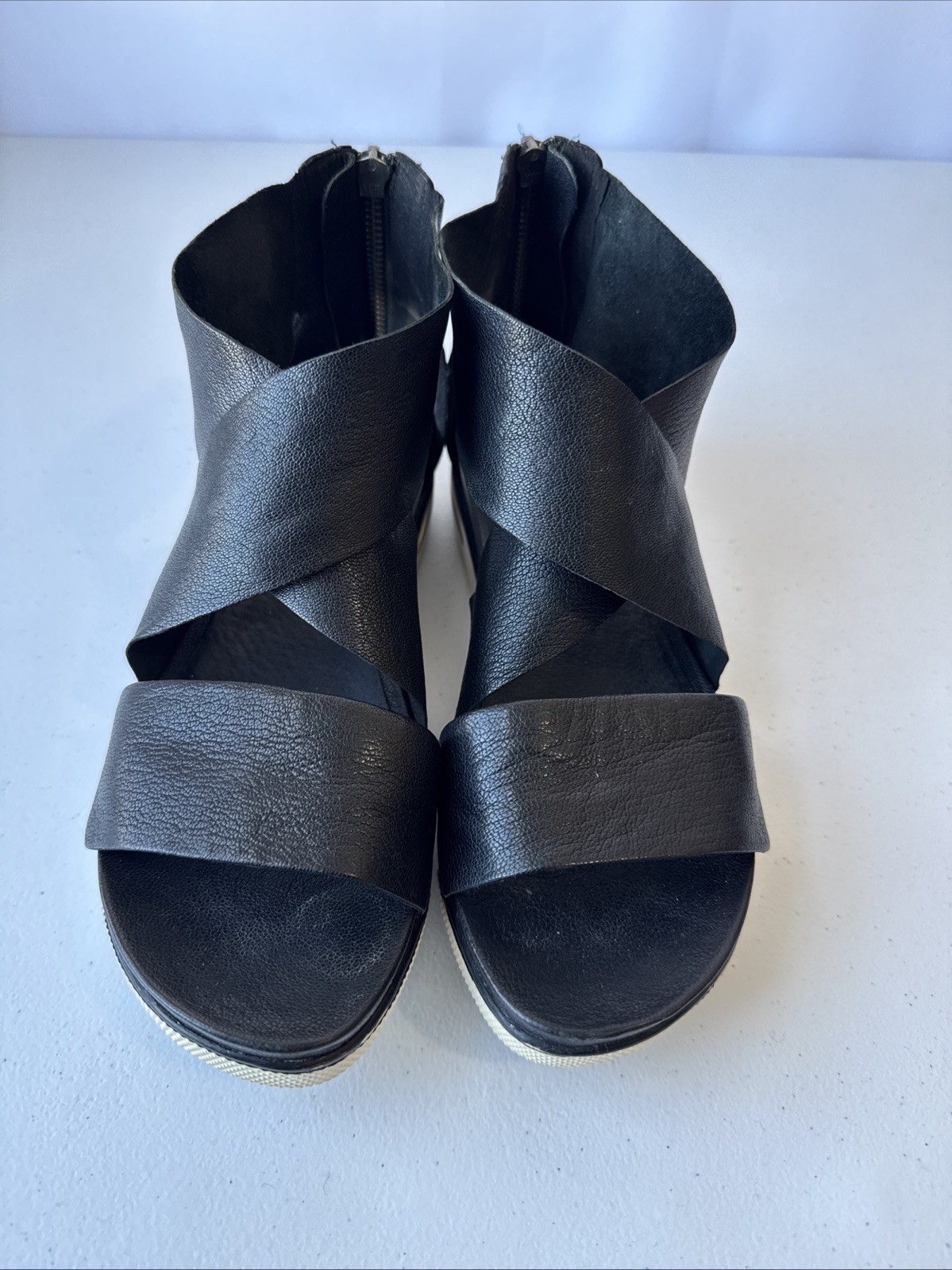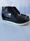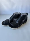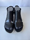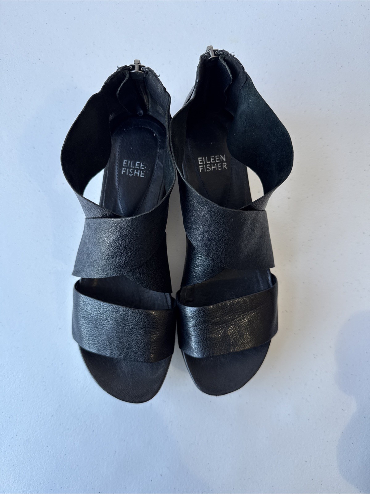 The Eileen Fisher Black Sport Tumbled Leather Platform Sandals in women's size 7 are stylish and versatile sandals perfect for various occasions such as travel, casual outings, and workwear. Featuring a low heel height and comfortable design, these strappy sandals are made of high-quality leather with a rubber outsole for added durability. The black color and solid pattern make them a classic and timeless choice, suitable for summer, fall, and spring seasons. With a zipper closure and logo accents, these sandals are a trendy and practical addition to any woman's wardrobe. Clean overall and ready to wear, please review all photos for details and condition. Smoke-free environment, fast shipping!