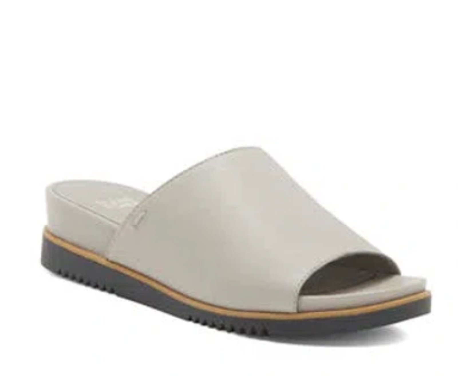 Eileen Fisher Woman's Koha Leather Sandal, Gray Authentic Guaranteed A bumper cupsole provides a sporty finish for a sandal lifted by a low heel sandal 1 3/4" heel; 1 1/4" platform 3 1/2" shaft Cushioned footbed Leather upper and lining/synthetic sole Women's Shoes Imported