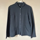 Eileen Fisher Jacket Womens SMALL Waffle Knit Button Front Career Workwear Black Size: SMALL Approx. measurements: 19" across (pit to pit), 24" long (shoulder to hem) Condition: Pre-loved and in gently used condition. Light wear. no stains, rips, or holes. - see all pics for any wear/condition Actual colors may vary. We do our best to ensure that our photos are as true to color as possible. However, due to photographic lighting sources, inconsistencies of various monitors settings, we cannot guarantee that the color you see accurately portrays the true color of the product. vintage, preppy, classic, workwear, work wear, business casual,