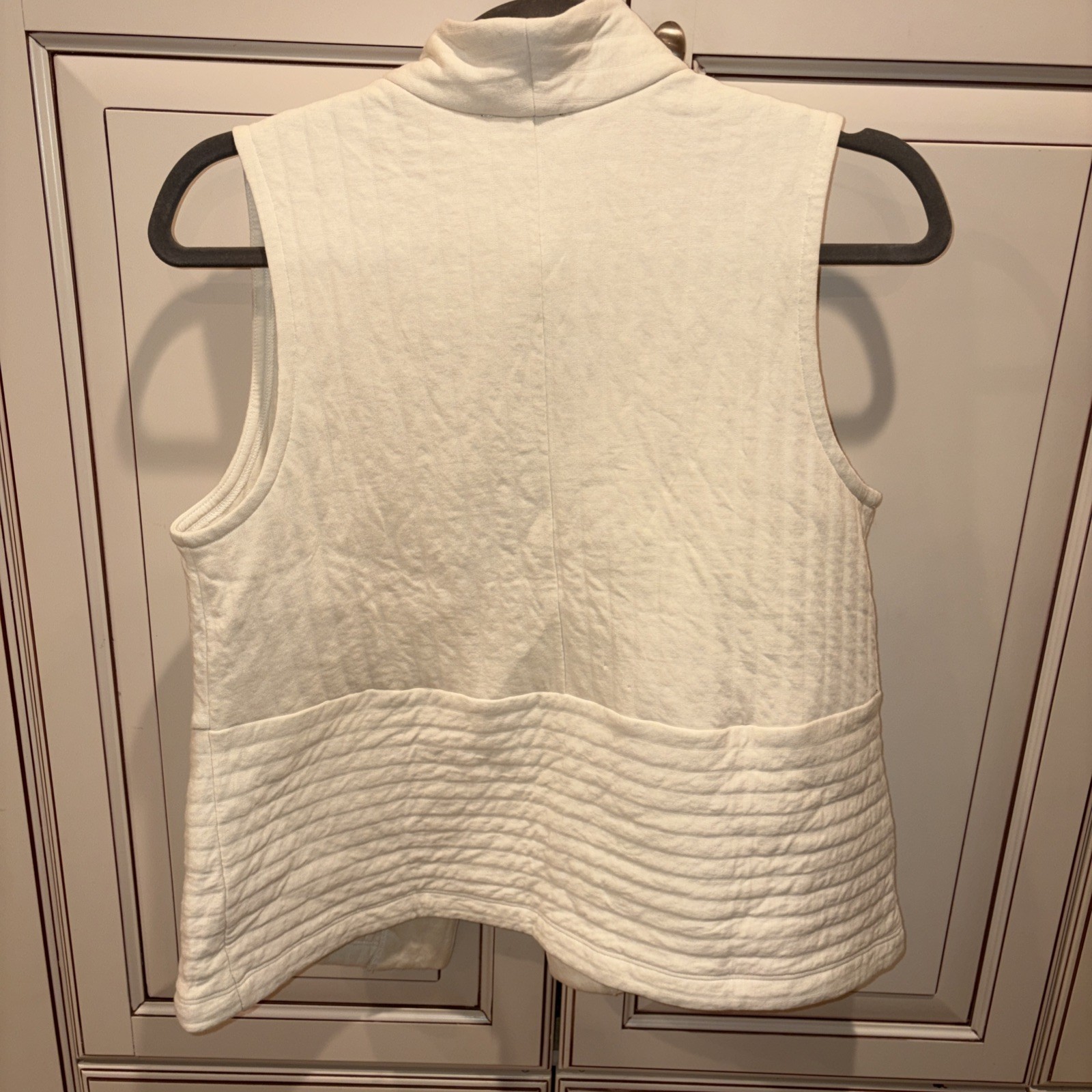The Eileen Fisher Organic Cotton Channels High Collar Vest in soft white XS is a stylish and sustainable addition to any woman's wardrobe. Made from high-quality organic cotton, this vest features a high collar and a slim fit, making it perfect for layering or wearing on its own. The soft white color and XS size give it a feminine and sophisticated look, while the brand's reputation for quality and style ensures that it will be a versatile and timeless piece in your closet.