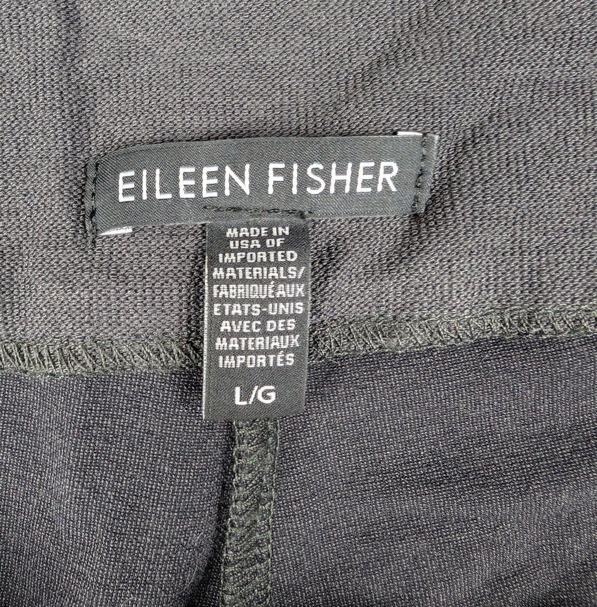 Brand: Eileen Fisher Size: Large (L/G) Size Type: Regular Department: Womens Type: Pants Style: Pull-On / Casual / Minimalist Color: Black Pattern: Solid Rise: Mid Rise Leg Style: Straight / Slightly Tapered Length: Cropped / Ankle Closure: Pull On Elastic Waist Material: 70% Viscose 24% Nylon 6% Spandex Features: Stretch, Comfortable, Travel Friendly, Easy Care Country/Region of Manufacture: Made in USA of Imported Materials Condition: Pre-owned