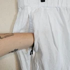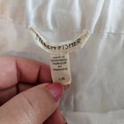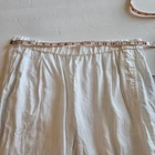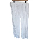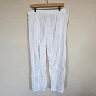 Eileen Fisher Pull On Linen Cropped Pants White Women's Large Coastal Grandma Elastic waistband Pull on Slim through the hips, wider through the leg. Fits the body with ease. On-seam pockets. Size L Large Approximate Measurements: waistband - 17.5 across hips - 21" rise - 12" inseam - 24.5" Good pre-owned condition, no rips, or tears. One tiny stain shown in photos. Material tag was cut out, it feels like linen. Smoke free, dog friendly home. summer spring comfort everyday casual travel vacation chic neutral coastal grandma beach