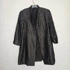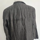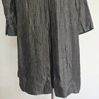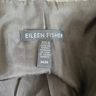 Eileen Fisher Silk Groove jacket Size medium Shell: 90% silk/10% acrylic Lining: 100% silk Dry clean Collared Open front Longline 3/4 sleeves Shiny gunmetal gray Deep inseam pockets Textured grooved fabric Fully lined No stretch Back pleats Condition: darker stripe on upper left back can be seen in photos of back. No other notable flaws/signs of wear #quiet luxury #chic #evening