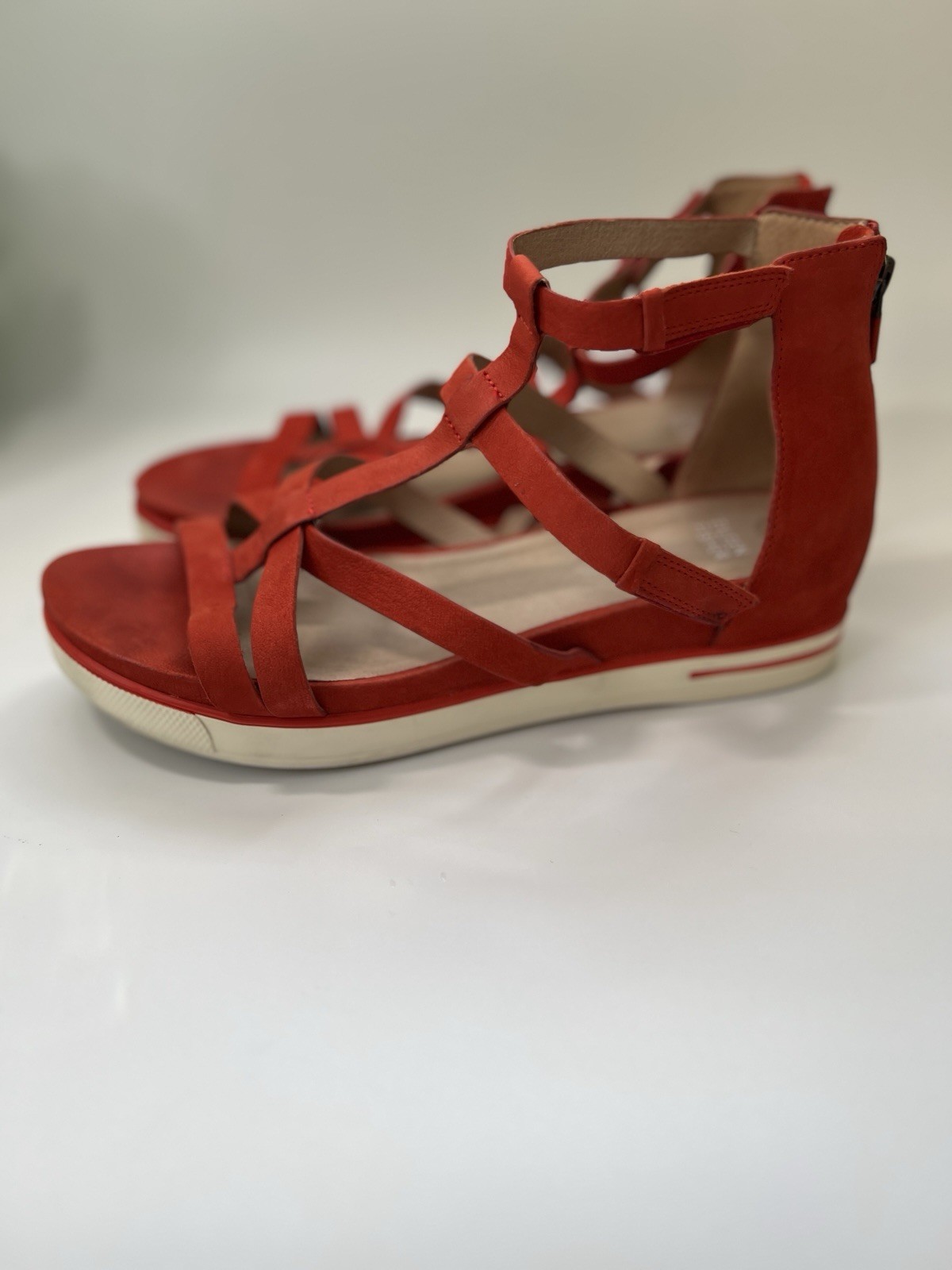 Eileen Fisher Sola Tumbled Nubuck leather sneaker sandals red poppy Sz 11 Comfy Hood condition does have some wear/ foot print on the insoles.