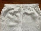 Eileen Fisher women’s M organic linen white pull on pants. Very good condition. No holes or stains. Nice light and airy. Elastic waist. Sewn cuff with raw hem for a relaxed look. No pockets. Comfortable fit. See pictures for measurements.