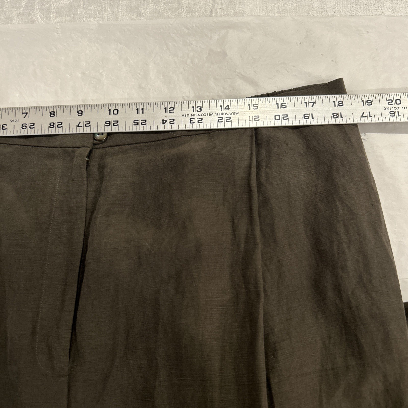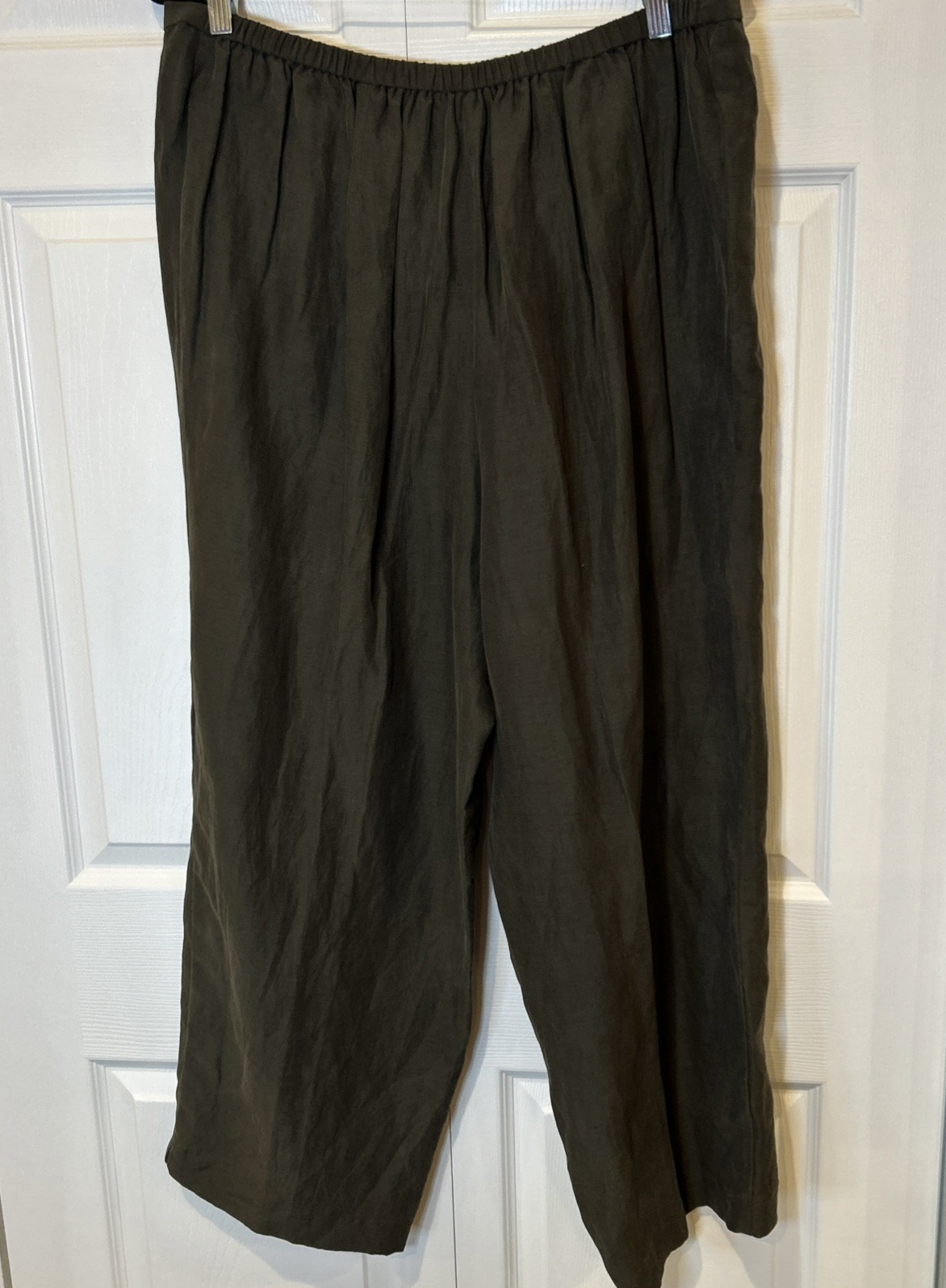These Eileen Fisher Women's Pants in size 3X are a stylish and versatile addition to any wardrobe. Made from lightweight silk in a dark green color, these pleated pants feature a high rise and a tapered leg style. Perfect for casual occasions in the summer, fall, or spring. The zip and button closure adds a touch of sophistication to these ankle-length pants, making them suitable for career wear in a city setting. Machine washable and easy to care for, these pants are a must-have for the modern woman seeking both style and practicality.